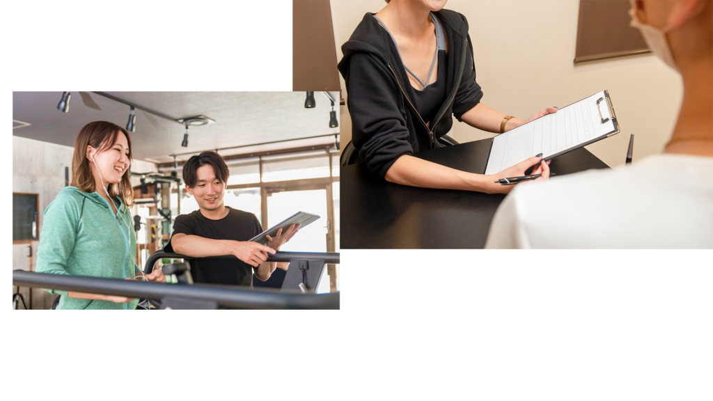 当ジムでは、これまでの運動歴や体の不調、達成したい目標などを丁寧にカウンセリングし、その内容をもとに最適なトレーナーをご案内しています。