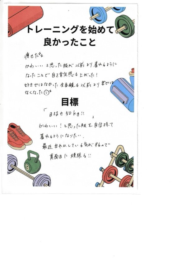 「目指せ50kg!」という目標に向けて、これからも全力でサポートさせていただきます!